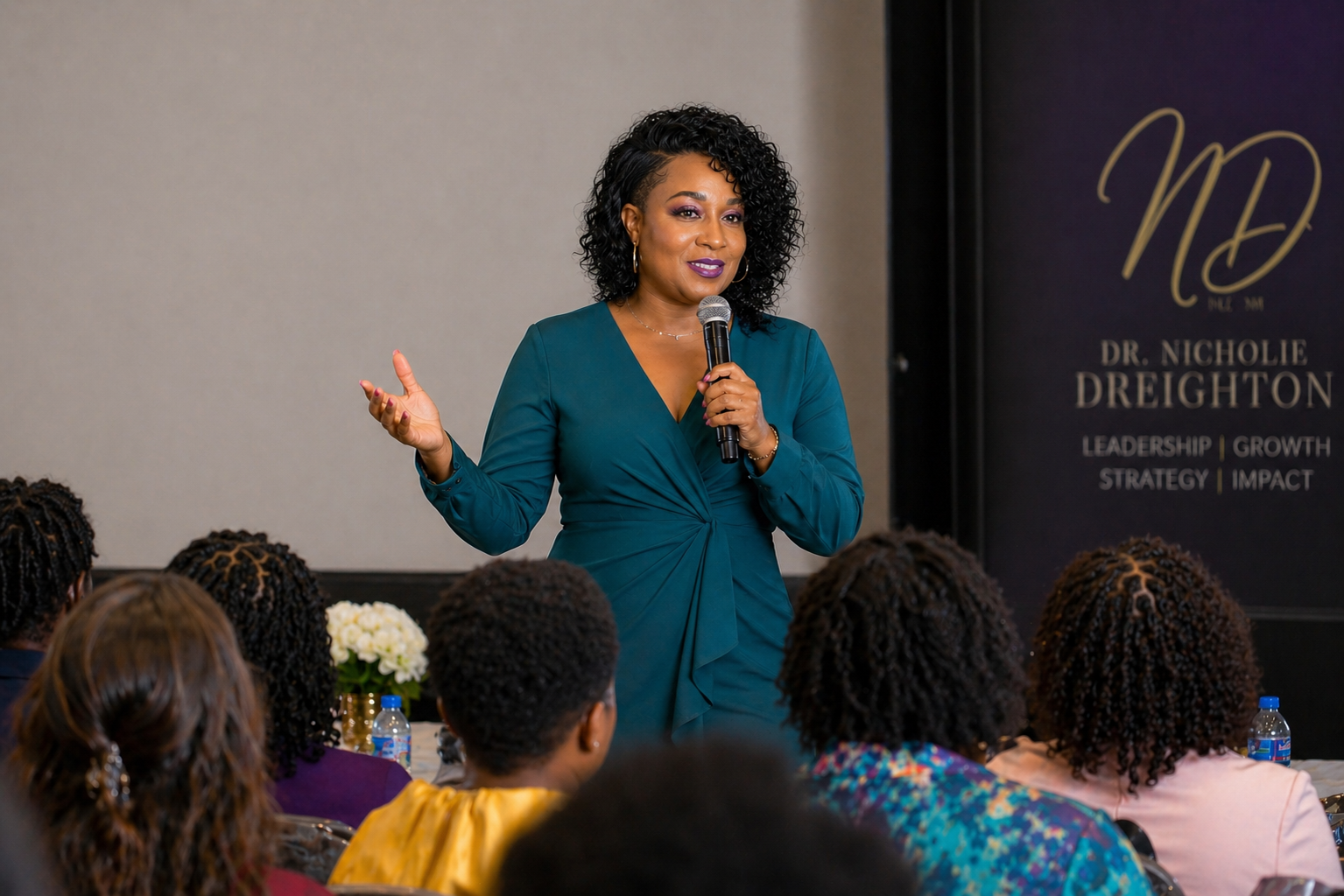 Dr. Nichole Dreighton speaks across various audiences and environments, partnering with organizations, leadership teams, and addressing diverse groups from commencement stages to churches and community events. While every experience is tailored to the moment, a consistent focus remains on leadership, growth, purpose, and impact. The outcome is always the same...equipping individuals to lead with clarity, grow with intention, and move forward with confidence.